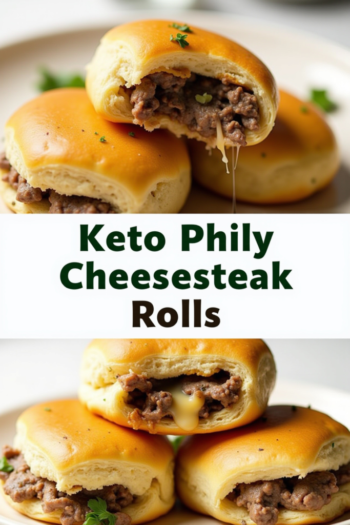 What makes these rolls irresistible is their clever use of thinly sliced beef and melted cheese, all snugly wrapped within a keto-friendly dough. The buttery, cheesy exterior perfectly complements the tender, peppery steak and onions inside, delivering a true Philly cheesesteak vibe—minus the carbs! Each roll is portioned perfectly for personal servings or party platters, making them as practical as they are tasty.